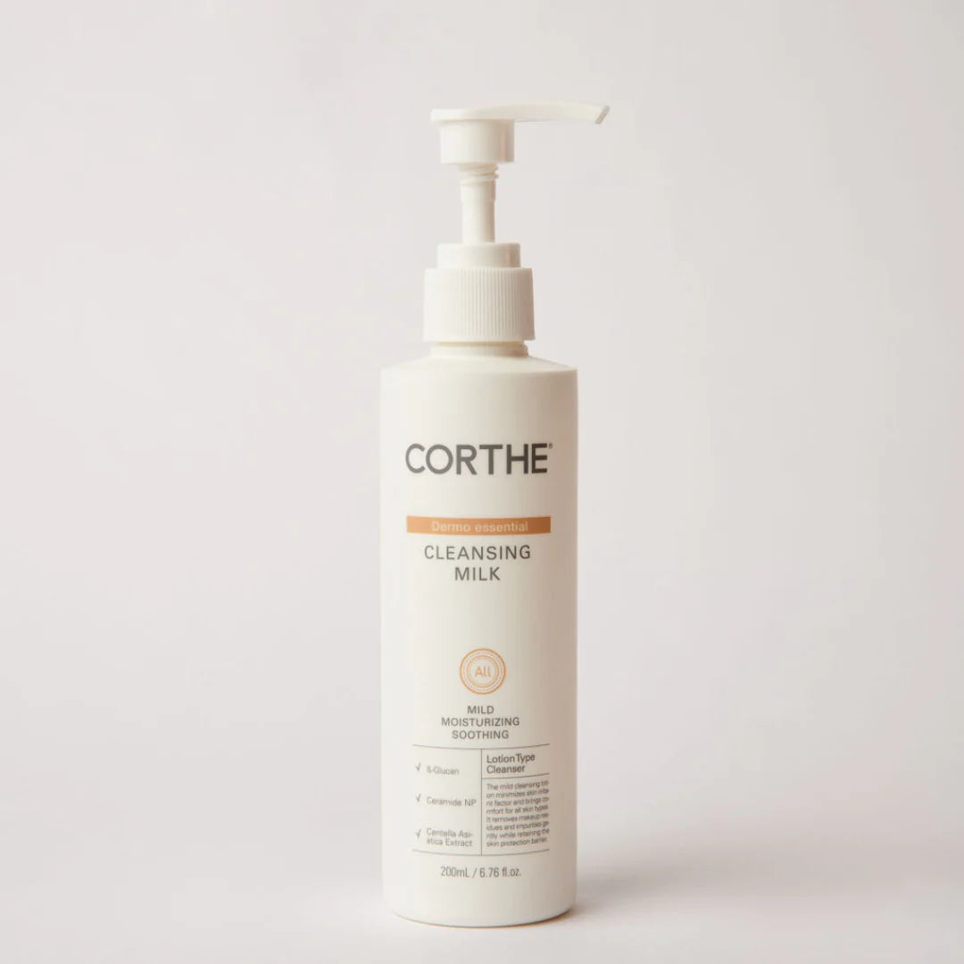 Corthe Dermo Essential Cleansing Milk is a non-foaming cleanser that gently and effectively removes makeup and impurities.